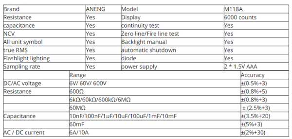 ANENG M118A - портативний, багатопараметричний мультиметр